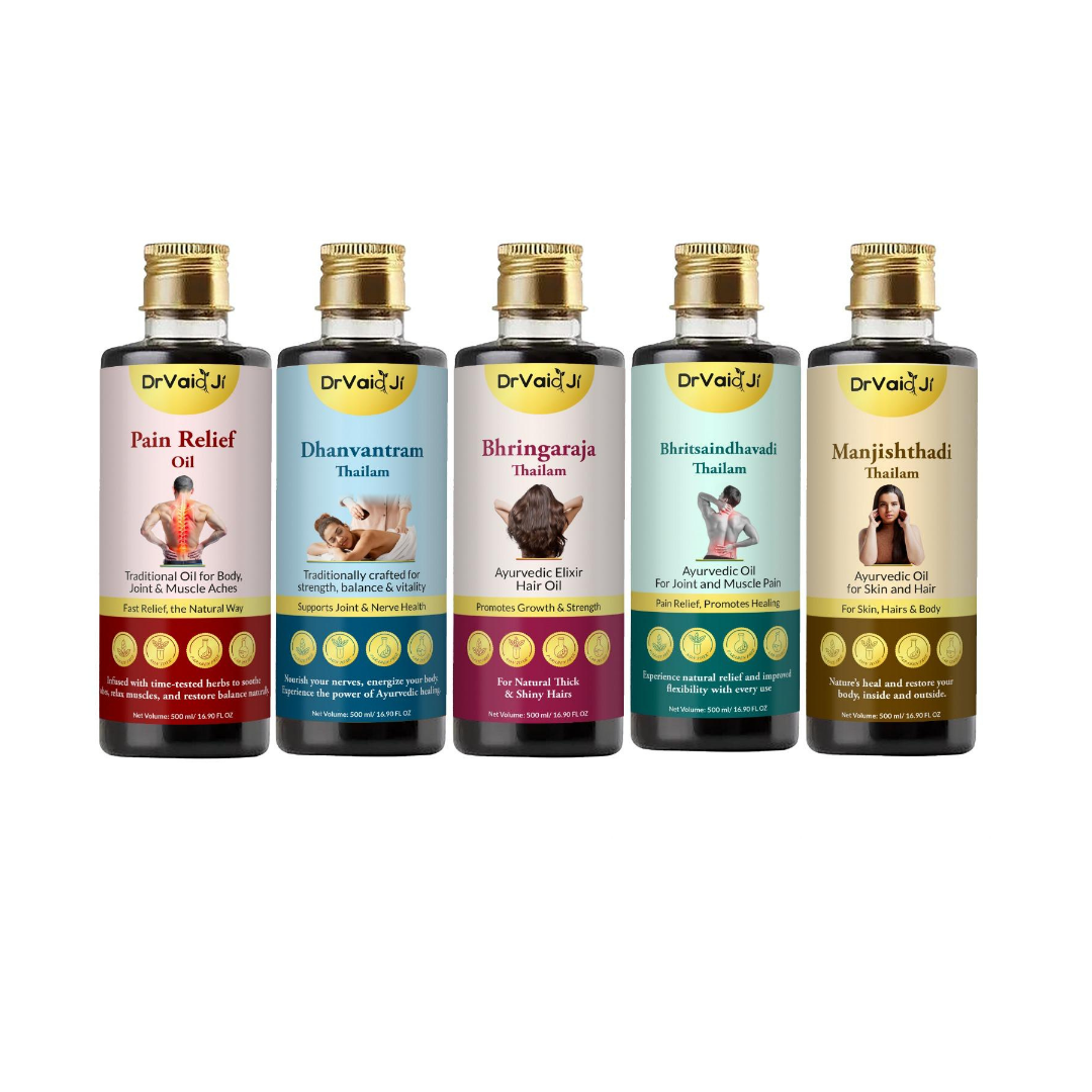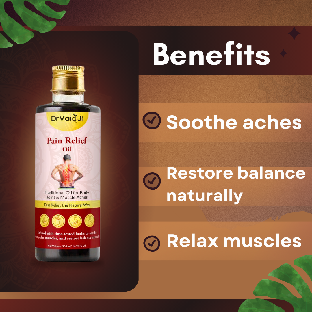 Dr Vaid Ji Pain O Kill Oil is a natural formulation prepared from medicinal herbs known for their anti-inflammatory, analgesic, and muscle-relaxing properties. It is based on ancient Ayurvedic principles that aim to balance the body’s doshas (Vata, Pitta, Kapha) and promote self-healing. The oil typically contains ingredients like Mahanarayan Tail, Gandhapura oil, Nirgundi, Dashmool, Eranda, and Turmeric, which work synergistically to relieve pain and stiffness. When massaged gently over the affected area, the oil penetrates deep into the skin, improves blood circulation, reduces inflammation, and relaxes muscles and joints. It is highly effective for joint pain, muscle cramps, arthritis, back pain, sprains, and sports injuries. The warm, soothing sensation it provides not only eases discomfort but also promotes healing at the tissue level. Unlike chemical-based painkillers, Ayurvedic Pain Relief Oil is free from harmful side effects and can be used regularly for long-term relief. It also nourishes the skin and strengthens bones and muscles over time. For best results, it is recommended to apply the oil warm and massage in circular motions, followed by covering the area to retain warmth. This traditional remedy is a safe, holistic solution for maintaining joint flexibility and an active lifestyle.