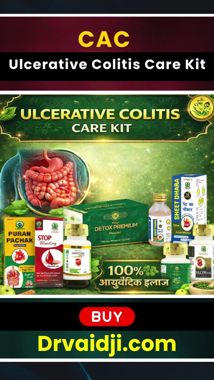"DrVaid Ji” Ulcerative Colitis Advance Care Kit” is 100% Herbal and Ayurvedic formulation. The medicines have pitta pacifying properties and also improves digestion which helps in ama digestion. These medicines have analgesic, anti-inflammatory, anti-oxidant and detoxifying effects that help to relieve the symptoms and eventually treat Ulcerative colitis